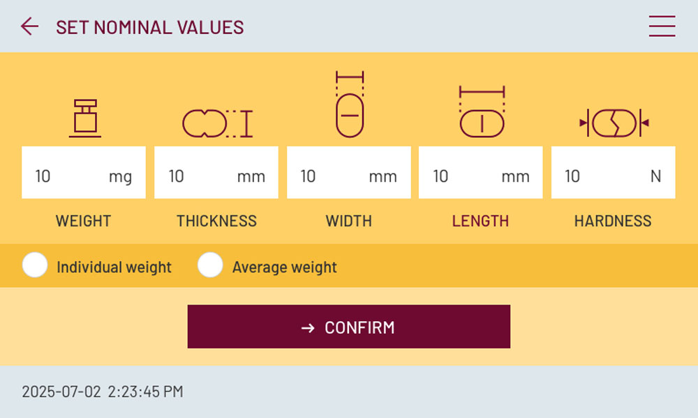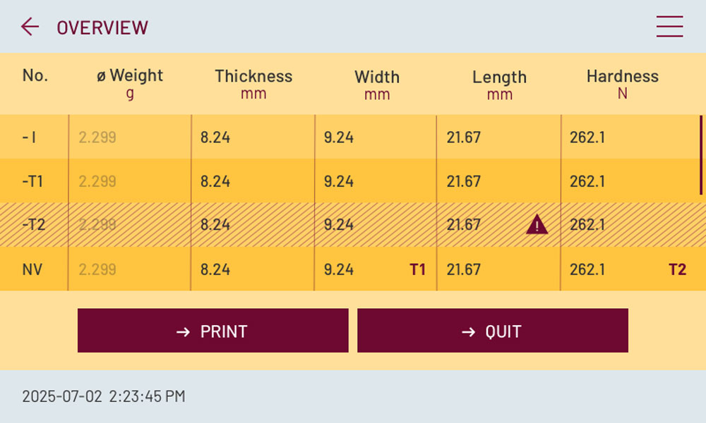 Прилад також може вимірювати геометричні розміри таблеток і за наявності під’єднаних ваг відображати їх масу.