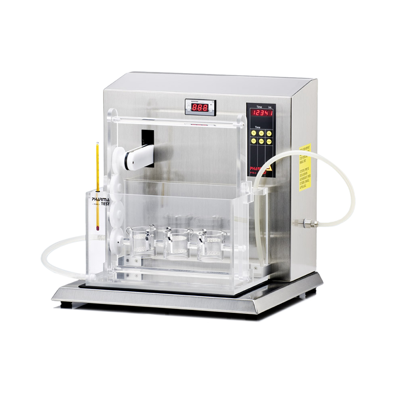 Тестовий кошик для трьох зразків поміщають у 12-літрову водяну баню з плексигласу. Запрограмуйте загальний час тестування й послідовність поворотів (зазвичай 10 хвилин) і розпочніть тест. Кошик автоматично повертається на 180° у запрограмованій послідовності протягом загального часу тестування. Зазвичай супозиторій розпадається протягом 30 хвилин. Для тестування песаріїв час циклу не вводиться, а зразки розміщуються зверху кошика, накритого скляною пластиною, що постачається. Вбудований термостатично керований нагрівач нагріває воду у бані до 37 °C або до необхідної температури. Система нагрівання спеціально розроблена для захисту від потрапляння будь-якого жиру або АФІ. Для очищення системи бані тримач для зразків і кошики для зразків можна повністю вийняти з приладу.